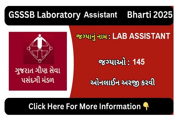 GSSSB લેબોરેટરી આસિસ્ટન્ટ ભરતી 2025 – 145 જગ્યાઓ માટે ઓનલાઈન અરજી કરો